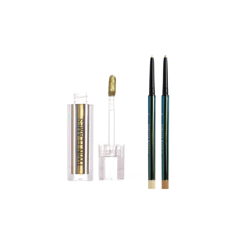 A multichrome, jewel inspired kit containing one award winning Twin Flames Multichrome Pigment and two Infinite Chrome Pencils. The versatility of this kit allows for you to create color rich, ultra chromatic looks with a single swipe of Twin Flames. Using the Infinite Chrome Pencils, create precise lines for the ultimate graphic liner look.
