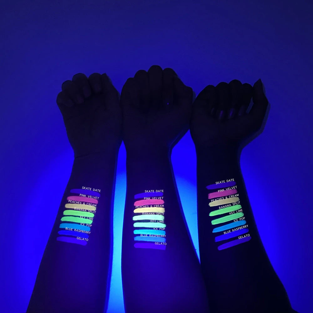 If you love the retro liners, this new paint palette was made for you! Same amazing formula you love but now in a versatile water-activated paint palette. Ideal to use as graphic liner, face, and body art! Large mirror included helping you create those more detailed and intricate looks. UV reactive shades and glow under UV lamp/blacklight.