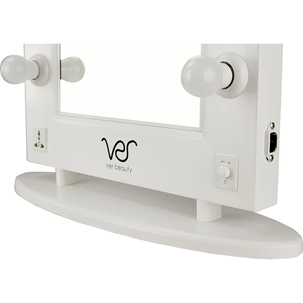 The Just Case Vanity Mirror is crafted of durable and high quality material with a pink matte metal body and base for table top setups. Ten dimmable LED bulbs provide the perfect brightness for makeup application. Comes with front mounted power outlet for charging all your beauty accessories.