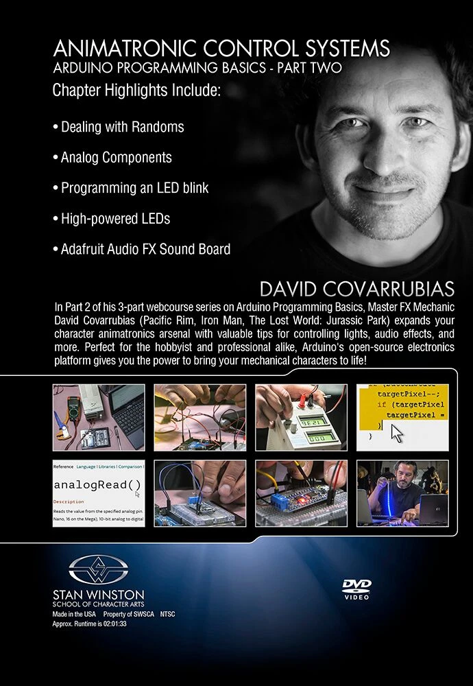 In Part 1 of his 3-part webcourse series on Arduino Programming Basics, Master FX Mechanic David Covarrubias (Pacific Rim, Iron Man, The Lost World: Jurassic Park) introduces you to Arduino’s open-source electronics platform based on easy-to-use hardware and software.